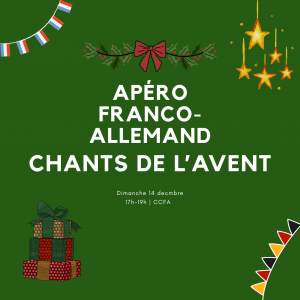Dernier apéritif franco-allemand de l'année : le 14 décembre, nous organisons une soirée chantante de l'Avent au CCFA. Nous nous ...
